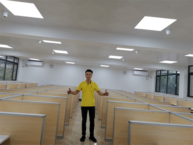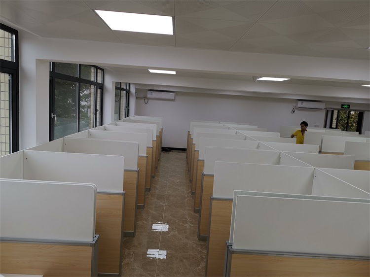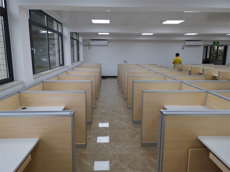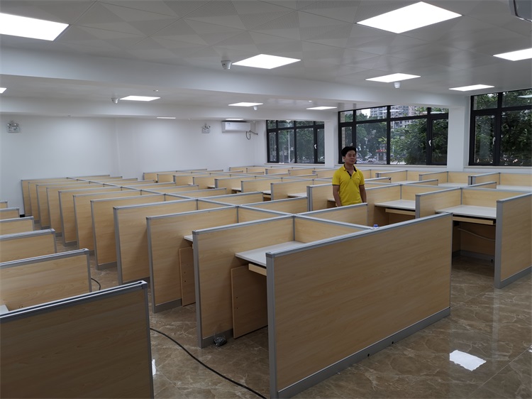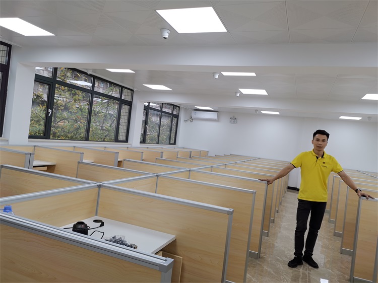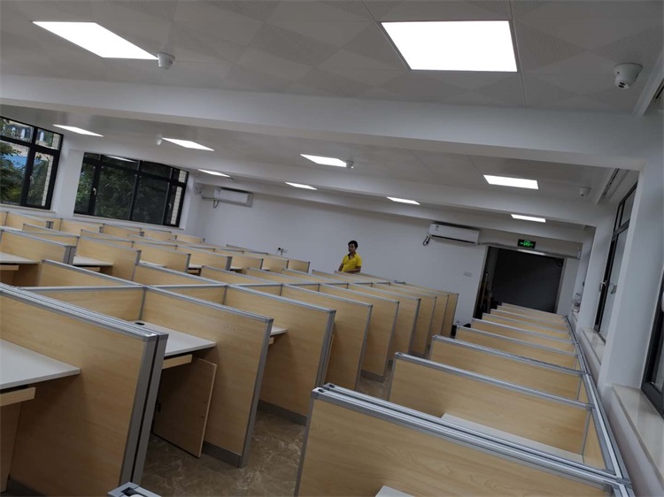 根據(jù)廣州仲愷農(nóng)業(yè)學(xué)院升降屏風(fēng)多媒體教室使用需求,本次語(yǔ)音聽(tīng)說(shuō)測(cè)試考場(chǎng),結(jié)合教室空間布局,設(shè)計(jì)了雙人位、四人對(duì)座位、六人對(duì)座位多種款式相結(jié)合的智能升降屏風(fēng)桌,最大程度的充分利用教室空間,每個(gè)座位都有可升降的屏風(fēng),屏風(fēng)升起后可有效的隔斷相鄰人的正常視線,防噪音效果,可達(dá)到互不干擾的作用;不需要屏風(fēng)時(shí),屏風(fēng)降下。和普通的教室無(wú)異,滿足一教室多用的需求。智能升降屏風(fēng)教室還有、拾音系統(tǒng)、視頻跟蹤錄像系統(tǒng)、高保真擴(kuò)音系統(tǒng)、提升教學(xué)質(zhì)量,滿足現(xiàn)代教育機(jī)構(gòu)對(duì)智能教室的要求。