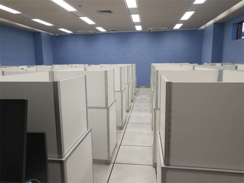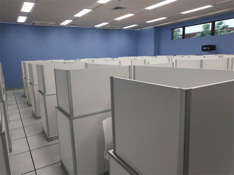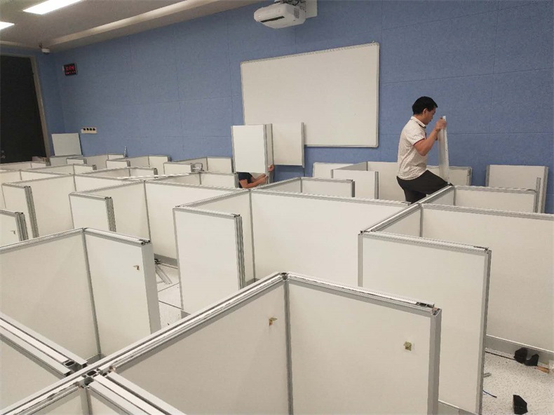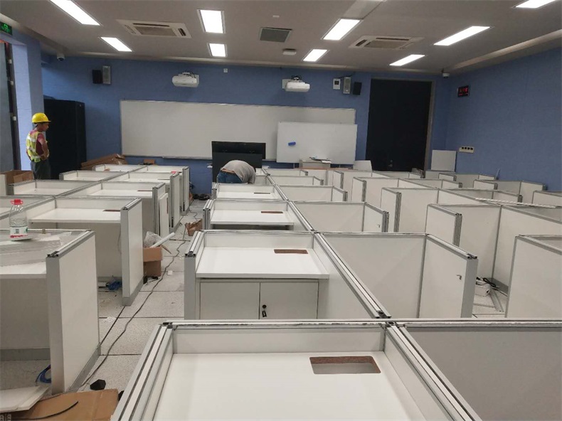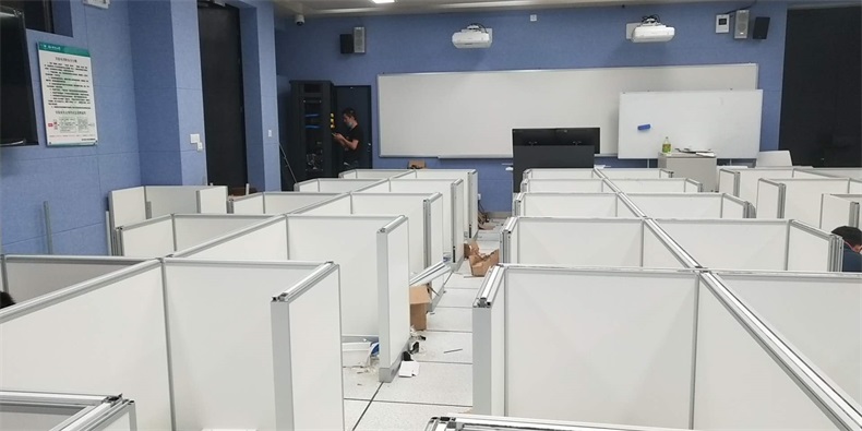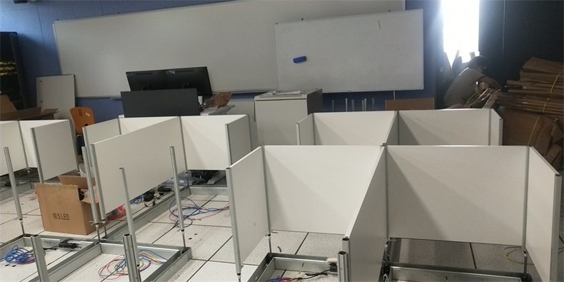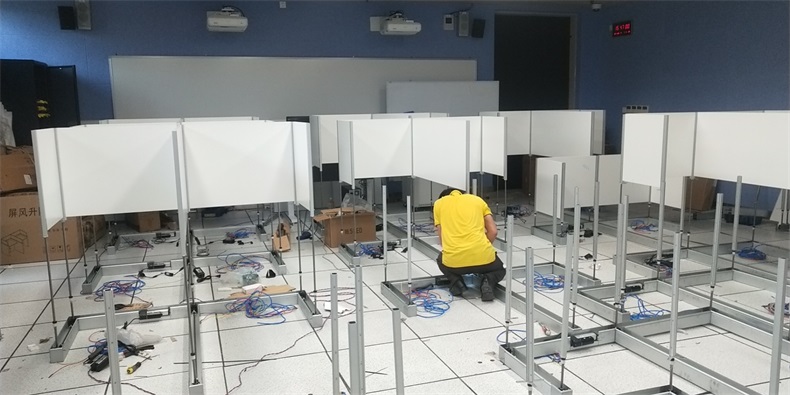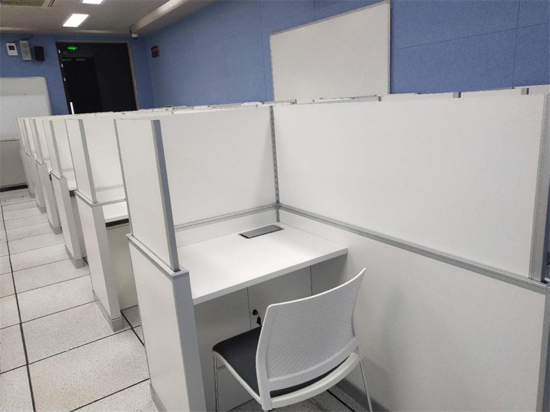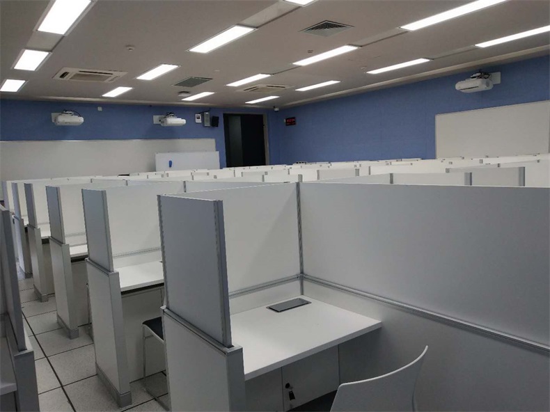根據(jù)南方科技大學對教室使用需求,在產(chǎn)品設計方面,電腦桌的左、右、前三面帶升降屏風擋板,用于隔斷相鄰考生視線。當屏風升起時,可以用作教室語音標準化考試使用,當屏風降下時,可以用于學生上課使用。實現(xiàn)了一室多用、考學合一。