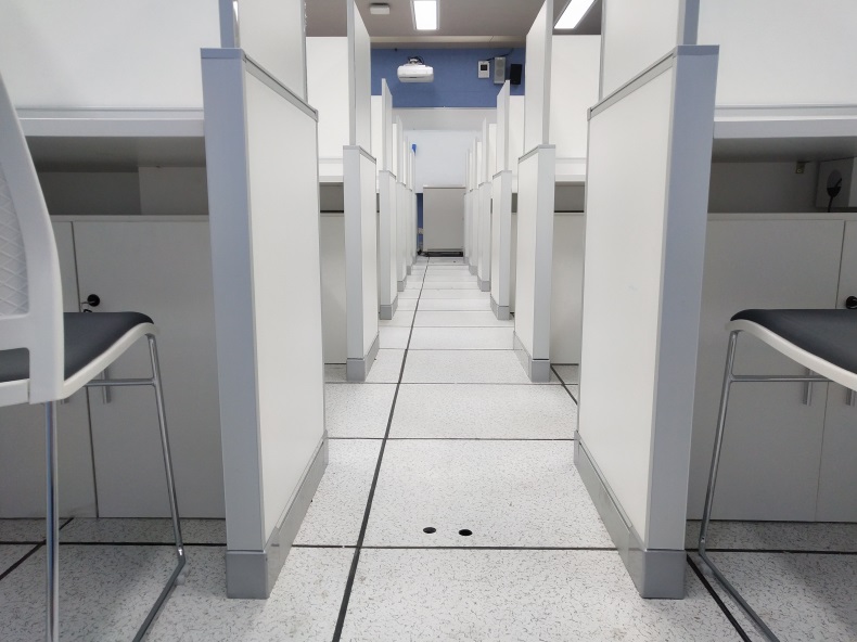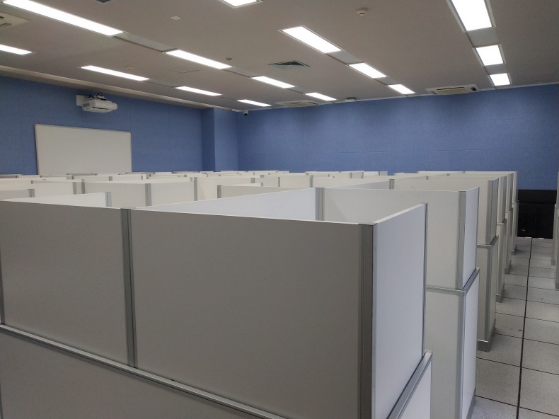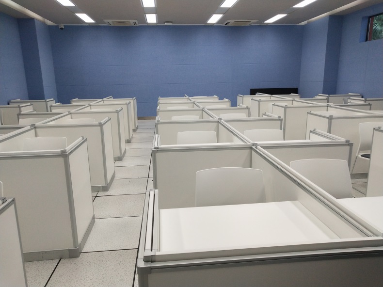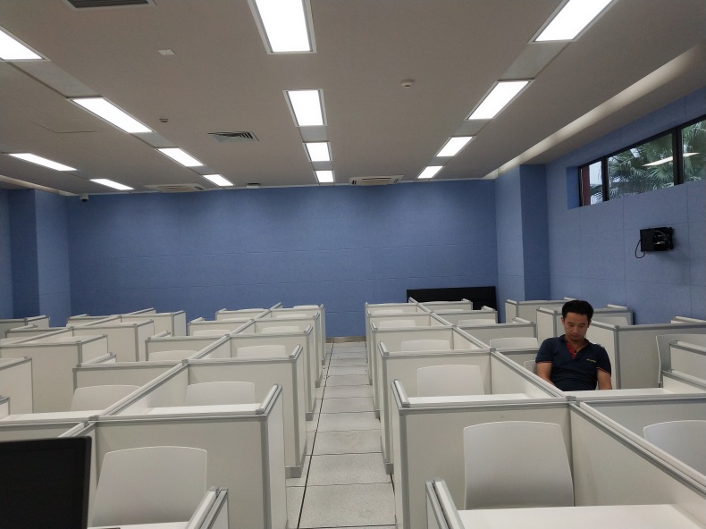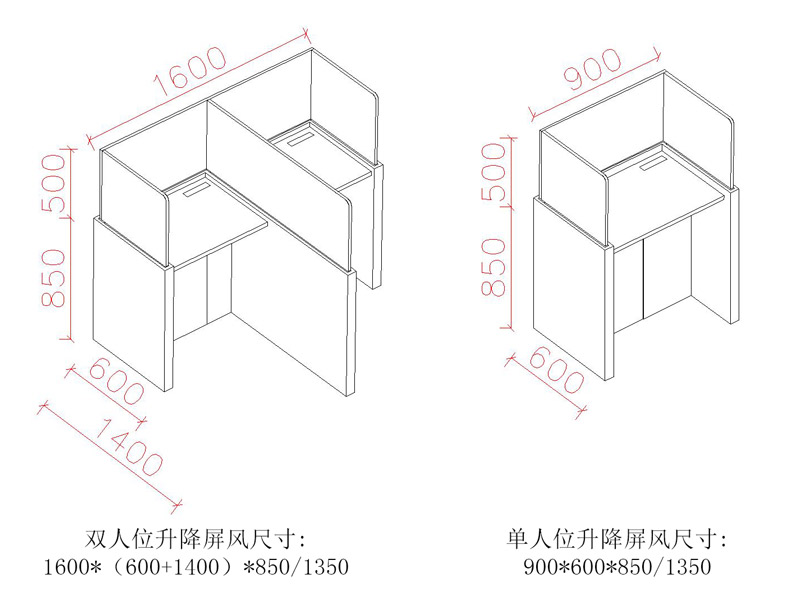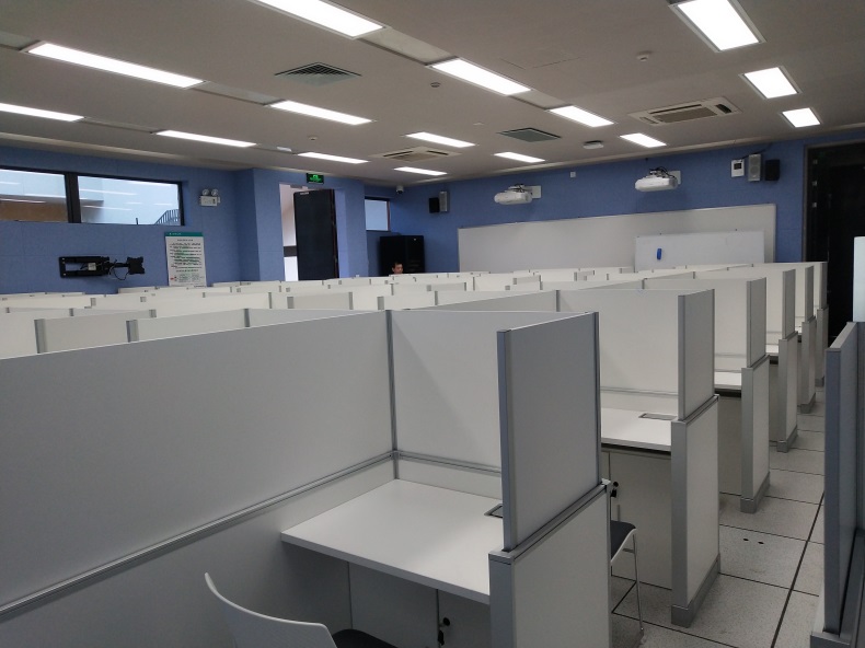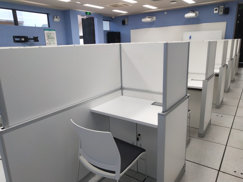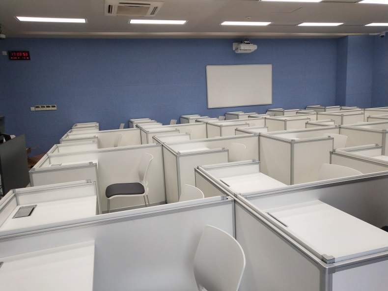 根據(jù)南方科技大學對教室使用需求,在產(chǎn)品設計方面,電腦桌的左、右、前三面帶升降屏風擋板,用于隔斷相鄰考生視線。當屏風升起時,可以用作教室語音標準化考試使用,當屏風降下時,可以用于學生上課使用。實現(xiàn)了一室多用、考學合一。