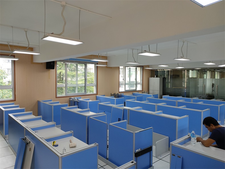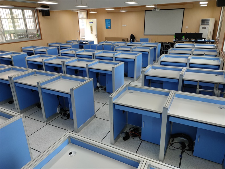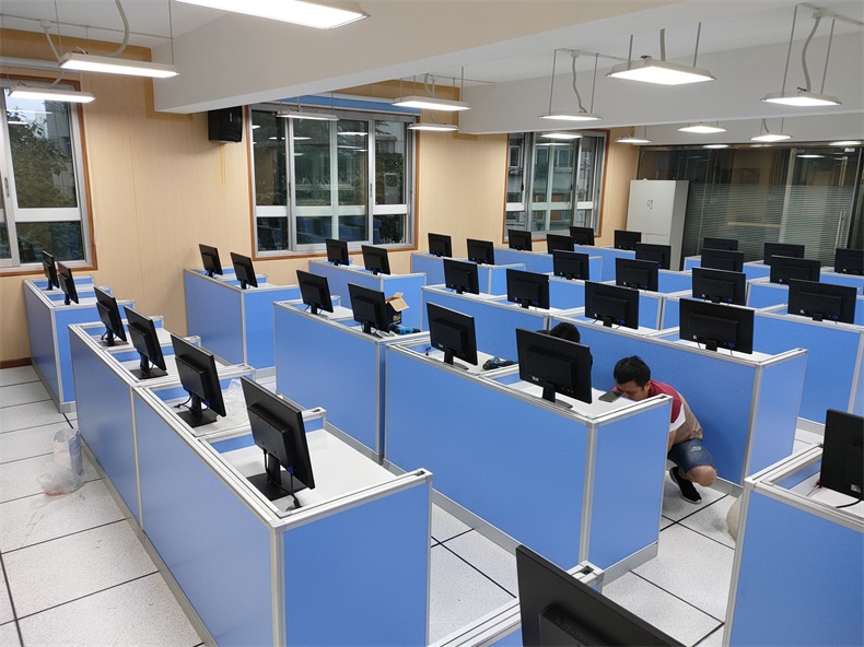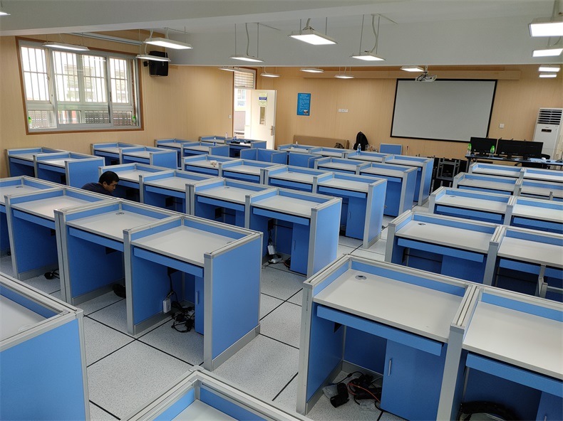 面對國家招生考試制度改革下,普通考場不能滿足需求,臨時增加建造多個考試專用考場,在時間和資金方面都不現(xiàn)實。所以需要一種屏風(fēng)擋板可以升降的電腦桌,來解決標準化考場與計算機語音教室的切換使用,實現(xiàn)一個教室多用途的解決方案。