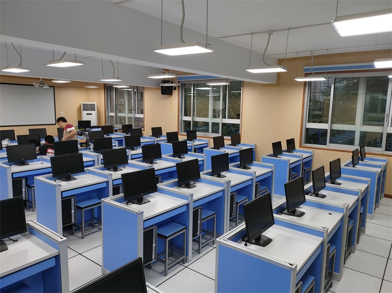 根據(jù)上海滬東外國語學(xué)校對教室使用需求,在產(chǎn)品設(shè)計方面,電腦桌的左、右、前三面帶升降屏風(fēng)擋板,用于隔斷相鄰考生視線。當屏風(fēng)升起時,可以用作教室語音標準化考試使用,當屏風(fēng)降下時,可以用于學(xué)生上課使用。實現(xiàn)了一室多用、考學(xué)合一。