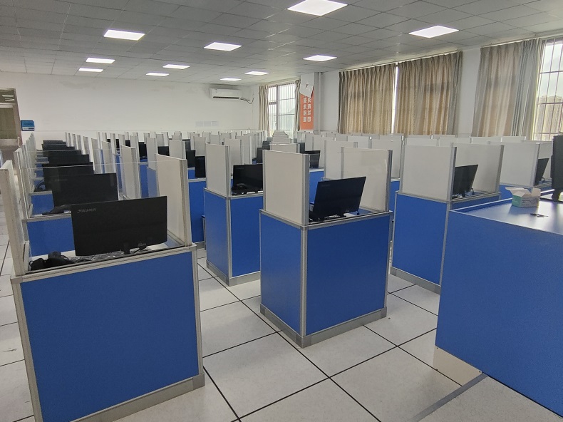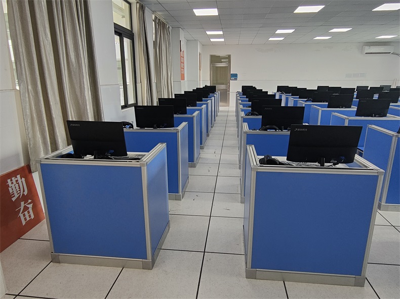 升降屏風語音聽說測試考場是當今教育部門及企業、事業單位教育及考試重要場所,是新型的科技化教學設備和現代化考試形式相結合的培訓及考試設施。升降屏風桌極大地解決了傳統桌子功能單一的缺點??荚嚂r:屏風升起,用于隔斷相鄰考生視線,每個考生即擁有獨立的空間,降低外界噪音干擾,杜絕屏幕窺視;日常上課時:屏風降下和普通的多媒體教室無異??蓪崿F真正意義上的多變空間一室多用。