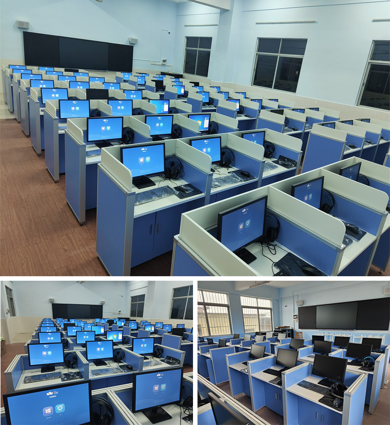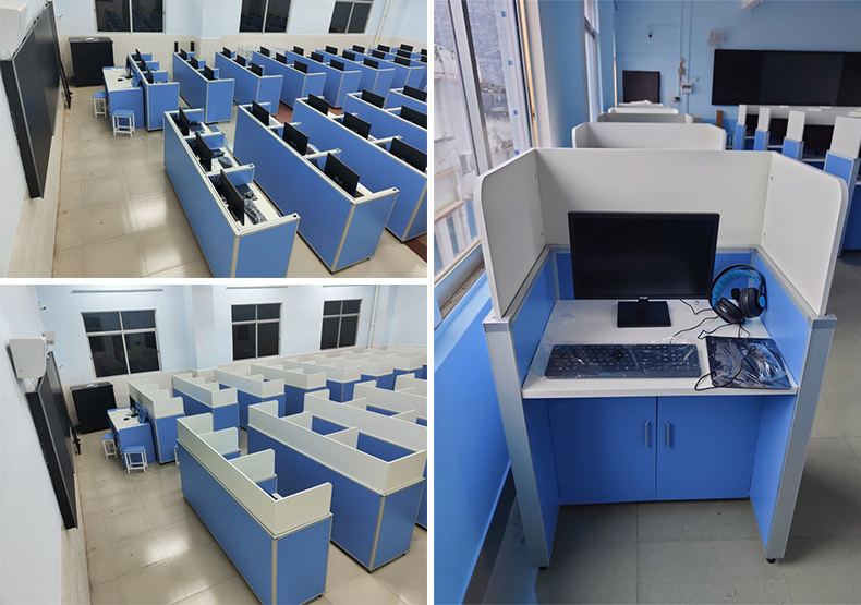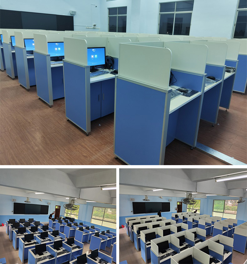 根據韶關市各學校對升降屏風教室的使用需求,方方智能對各學校設計了可以升降的智能升降屏風桌,每個座位都有可升降的屏風,考試時屏風升起后可有效的隔斷相鄰人的正常視線,防噪音效果,可達到互不干擾的作用,當屏風降下時,可以用于學生日常上課使用。實現了一室多用、考學合一。