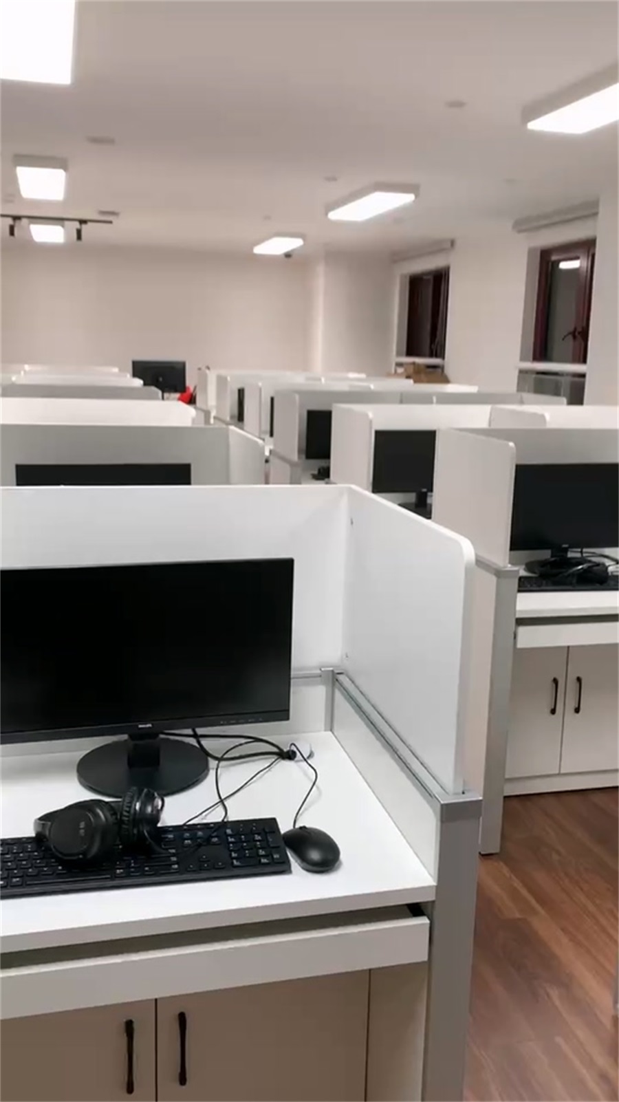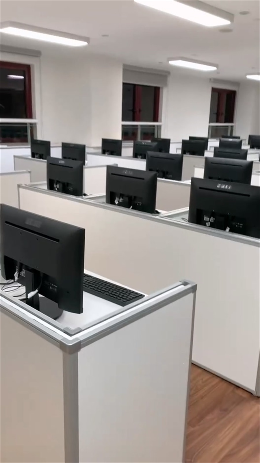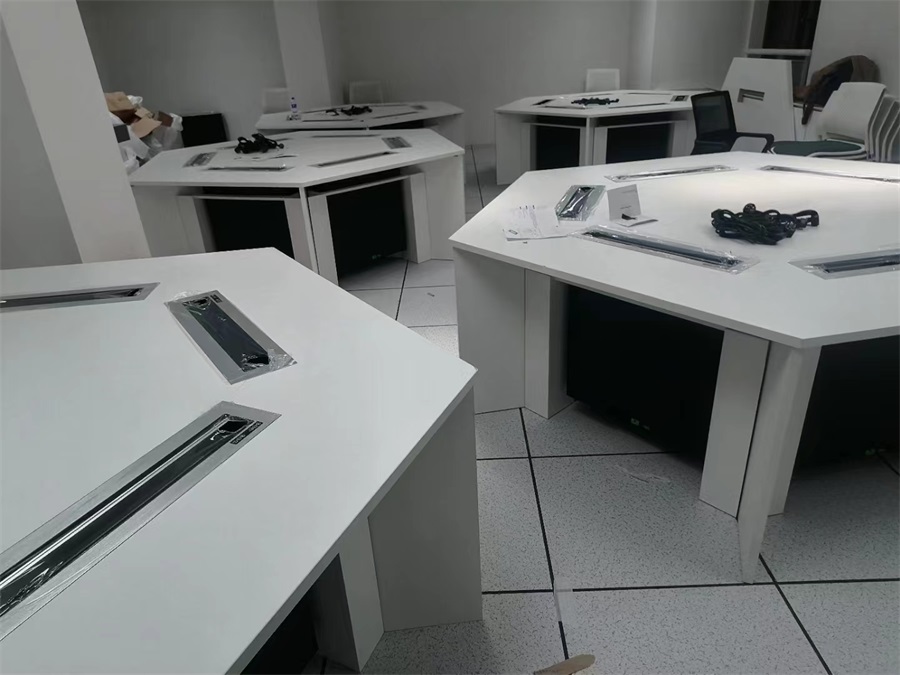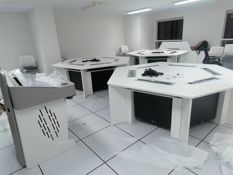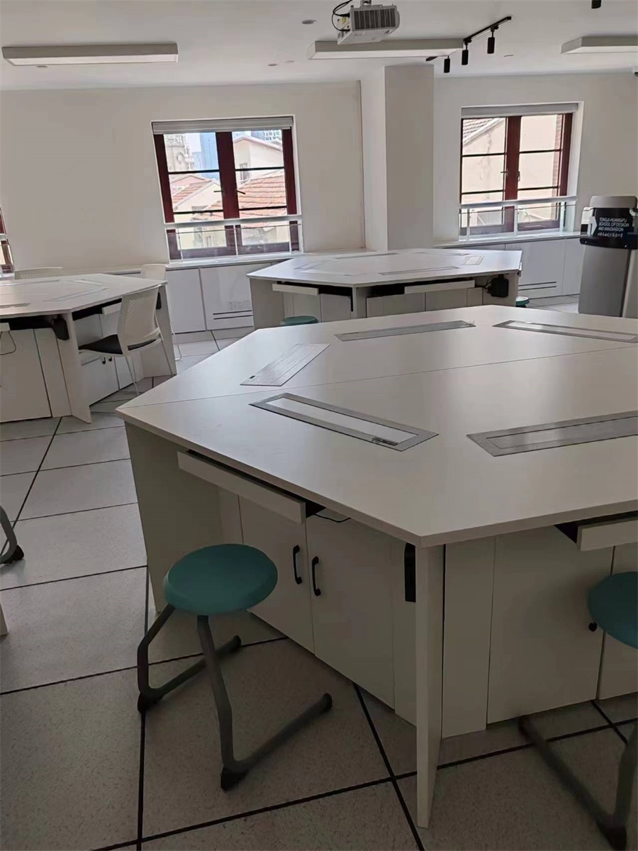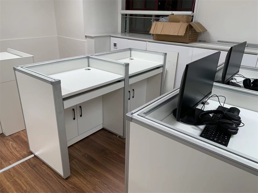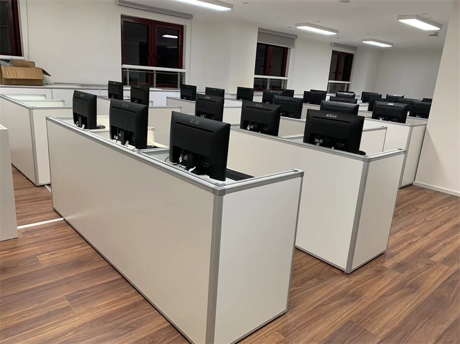 根據(jù)上海黃浦區(qū)同創(chuàng)中學(xué)語(yǔ)音教室的使用需求,方方智能對(duì)該語(yǔ)音室設(shè)計(jì)了一套可以升降的智能升降屏風(fēng)桌,每個(gè)座位都有可升降的屏風(fēng),考試時(shí)屏風(fēng)升起后可有效的隔斷相鄰人的正常視線,防噪音效果,可達(dá)到互不干擾的作用,當(dāng)屏風(fēng)降下時(shí),可以用于學(xué)生日常上課使用。實(shí)現(xiàn)了一室多用、考學(xué)合一。