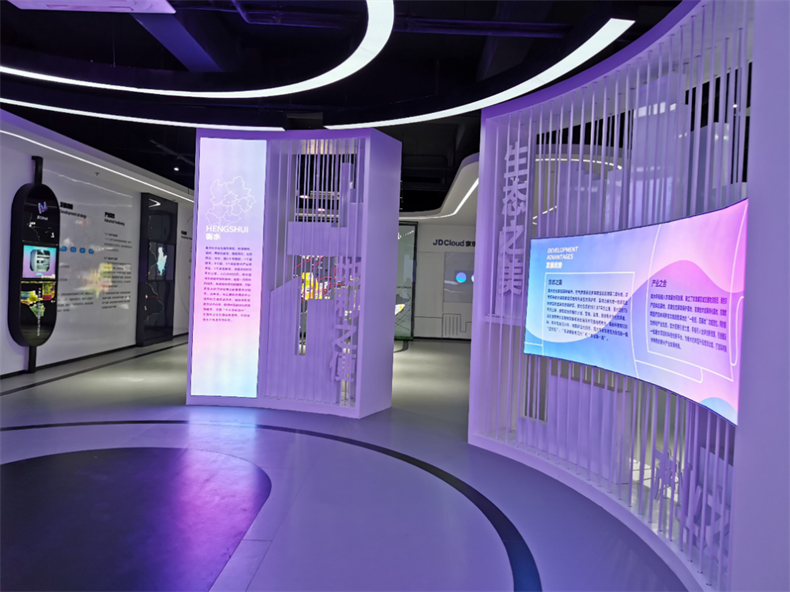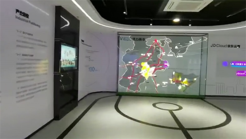 項目背景: 京東集團與衡水市戰略合作,簽訂互聯網+新經濟發展合作項目,根據衡水市經濟產業規劃,集中打造產業示范展示門戶,將新經濟展廳建設成為衡水市新經濟產業的新名片。 方方智能科技作為項目整體解決服務商,從創意策劃、展廳設計、裝修施工、數字內容制作到系統裝配、設備安裝,一體化實施,為京東云衡水新經濟體驗中心打造出功能復合的展示體驗空間,作為衡水與京東合作成果展示空間;打造線上線下一體化、可持續更新的衡水新經濟體驗空間;以京東云落地為契機,打造持續性的產業帶動效應,塑造衡水數字經濟發展地標! |
