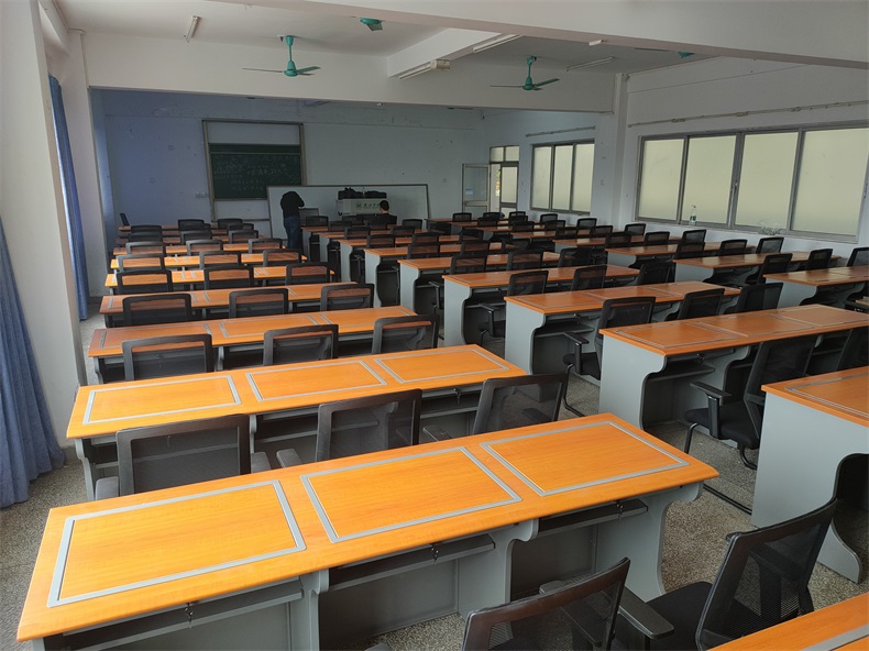 根據惠州學院計算機教室使用要求,方方智能為該學校設計了電腦翻轉桌。翻轉器與電腦桌配套使用,拉動開關按鈕液晶顯示屏會自動翻起,鍵盤也同時升起與桌面齊平;當不需要使用電腦時,可用手動按下翻蓋面板,整個翻轉器與桌面齊平,和普通的教室無異。產品具有防盜、防塵保持桌面平整,美化桌面等功能,電腦桌內還可以存放各類文具和學習用品,實現普通教室與計算機教室模式相互切換快速,不阻礙老師與學生之間目光交流,滿足一教室多用的需求