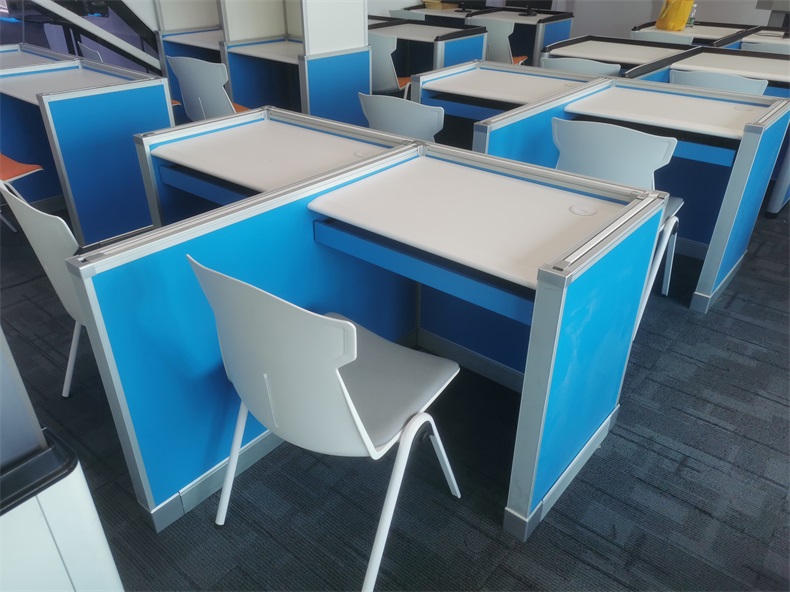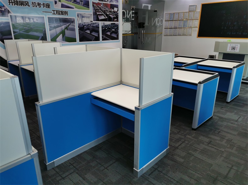 1、*固定屏風高度850mm,桌面高度750mm。活動屏風行程850-1400mm。形成獨立空間,起到良好的隔音隔斷效果,確保能最大程度降低相鄰學生之間考試時的互相干擾和影響.