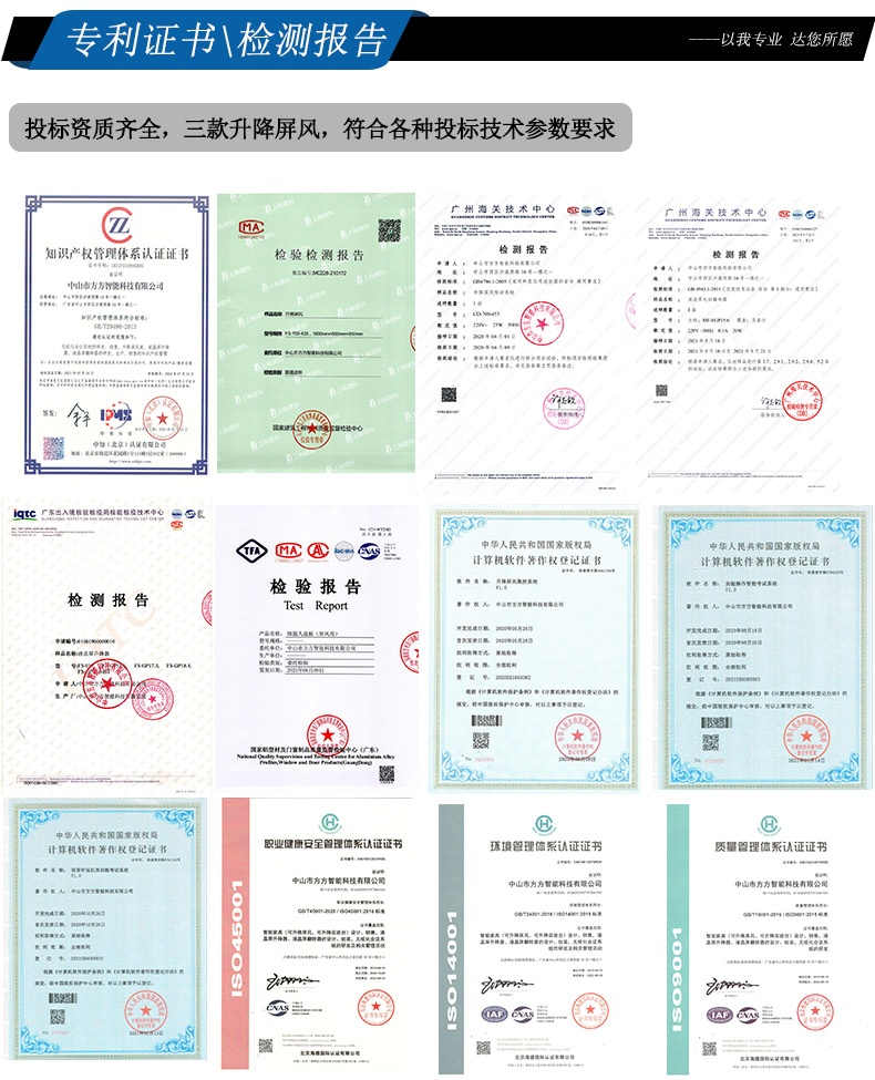 10、*升降屏風(fēng)生產(chǎn)廠家通過質(zhì)量管理體系認(rèn)證、環(huán)境管理體系認(rèn)證、職業(yè)健康安全管理體系認(rèn)證、知識產(chǎn)權(quán)管理體系認(rèn)證(貫標(biāo))證書覆蓋范圍必須包含升降屏風(fēng)。