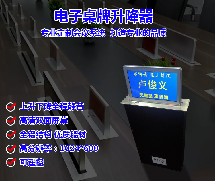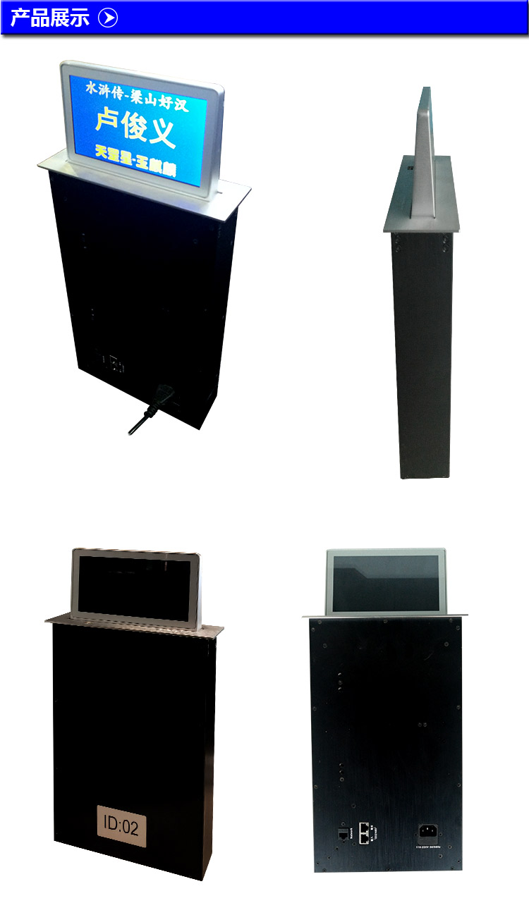 本產品是我司自行研發,將軟件功能進行簡化,使用更加便捷,而且增加了隱藏式一體功能,客戶使用時桌牌一鍵升出至桌面,不使用時下降到桌子里面,保持桌面整潔。